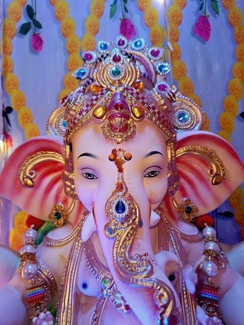 The Ganapati Atharvashirsha is deeply rooted in ancient Indian spirituality, reflecting the cultural reverence for Ganesha as a remover of obstacles. Its historical significance lies in its origins within the Atharva Veda, showcasing its ritualistic and philosophical importance. Culturally, it has influenced art, festivals, and daily worship, embodying the essence of Hindu devotion. The text’s timeless wisdom has endured for centuries, solidifying its place in both traditional and modern spiritual practices.