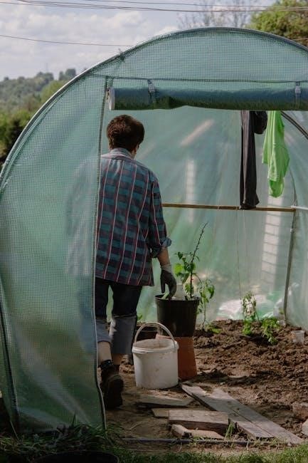 Ensure smooth operation and climate control! Assemble the door frame‚ hang the door securely‚ and install a ventilation system for optimal greenhouse conditions.