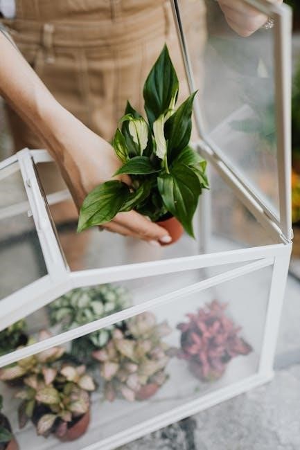 Proper ventilation is crucial for regulating temperature and humidity within your greenhouse. Locate pre-designated ventilation openings‚ typically near the roof or sides‚ as outlined in your kit’s manual. Install vents or fans‚ securing them firmly to the greenhouse frame.