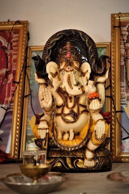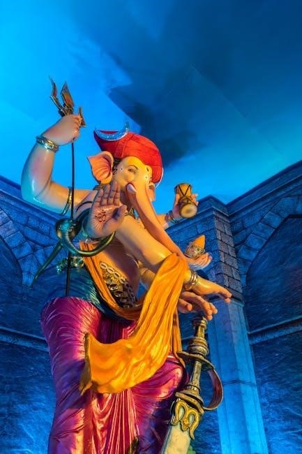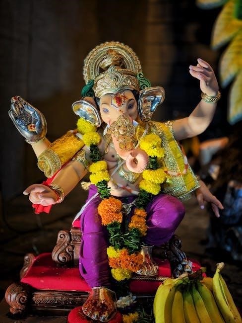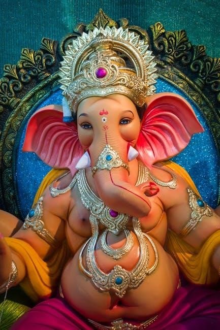The PDFs also highlight Ganesha’s association with education, arts, and sciences, making him a patron deity for students and scholars. They demonstrate how his blessings are sought for intellectual pursuits. Ultimately, the Vinayaka Chavithi Katha PDF resources portray Ganesha as an integral part of the Hindu faith, deeply woven into the fabric of everyday life and spiritual practice;